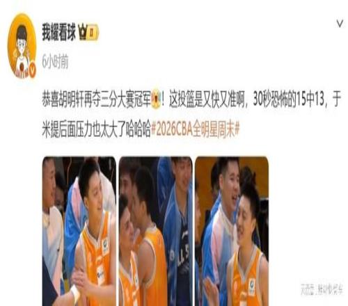 2026年CBA全明星三分大賽決賽,胡明軒終于大爆發(fā)了。在常規(guī)時間里,他投出了22分的高分,與于米提打成平手。雙方在隨后的加時階段,胡明軒再度上演神跡投射,在短短30秒內(nèi),他出手15次,命中13球,命中率達到驚人的86.7%。從這一次三分球大賽來看,胡明軒的狀態(tài)依舊滿血回來了,看樣子,郭士強在前陣子世預賽放棄胡明軒,確實有點后悔了。